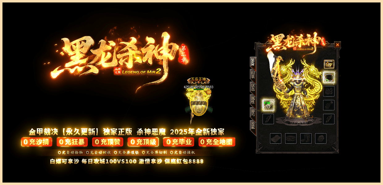 ★黑龙杀神★:已经稳定开放半年,10倍充值,百倍爆率,千倍激情,万人拿沙,所有装备靠打,白嫖永远不死!